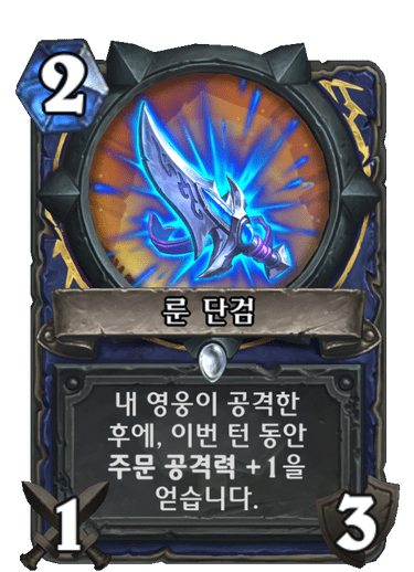 2코 1/3 무기, 내 영웅이 공격한 후에, 이번 턴 동안 주문 공격력 +1을 얻습니다.