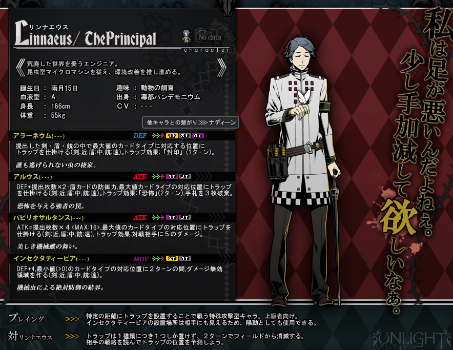 황폐한 세상을 슬퍼하는 엔지니어. 곤충형 마이크로 머신을 거느리고 환경개선을 추진한다.