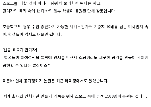 옆옆나라의 먹어서 응원하자를 보고 좆본인들의 카미카제 정신에 깊은 감명을 받은 중국인들이 중국에서 추진하는 스모그 제거 운동. 수많은 중국인들이 마셔서 정화하는 거다. 물론 폐가 썩어 넘쳐날 것이다.