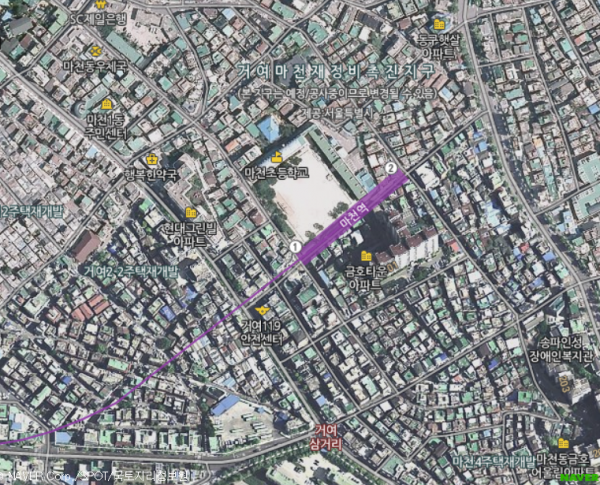 출입구가 골목길 안에 있어 인근 마천초등학교는 초 역세권이다.