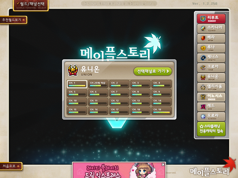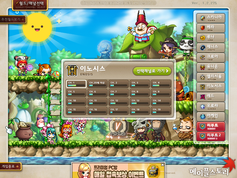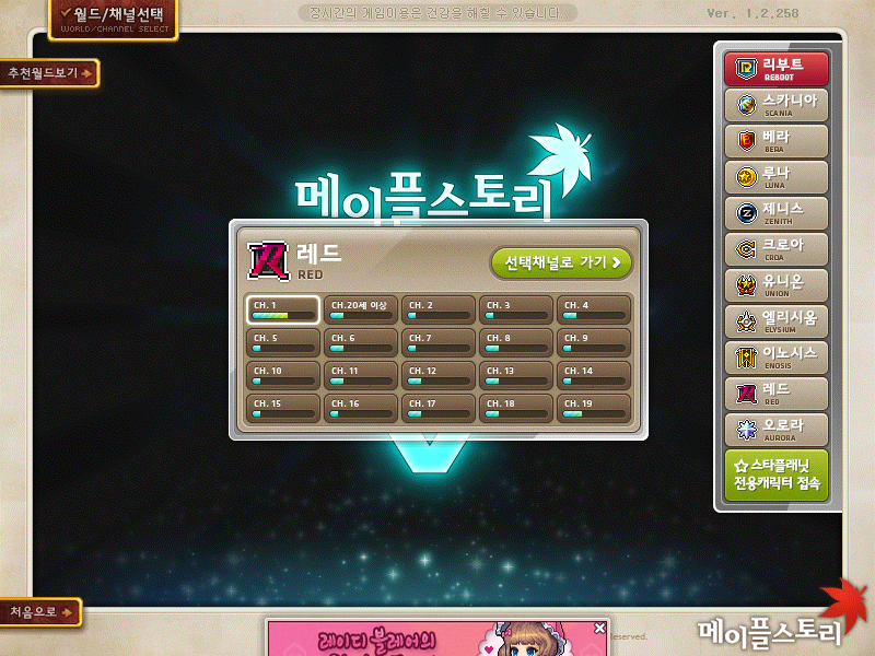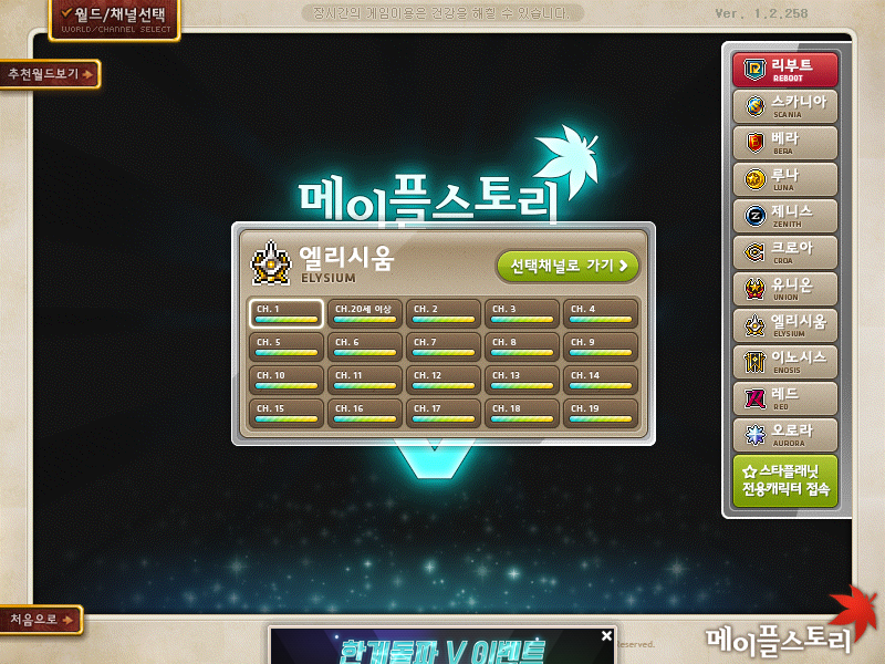 사람이 없다고 소문이 난 유령 서버다. 그냥 텅텅 비어서 새로 생긴 리부트와 비교하면 답도 없고 진짜 아무것도 없...었는데 5차 전직은 물론, 오레드라로 덕분에 서버가 폭주했다. ㅅㅂ...
