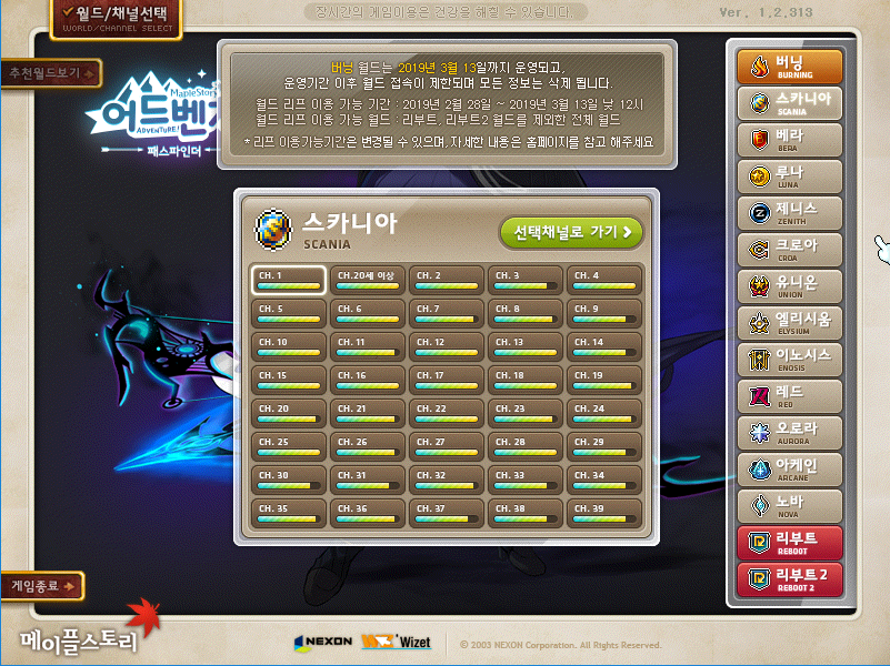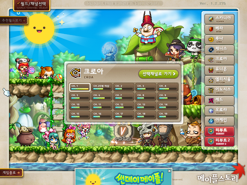 메이플 서버 중에서 사람이 제일 없다. - 노바 서버 때문에 콩콩라라인인 등극.