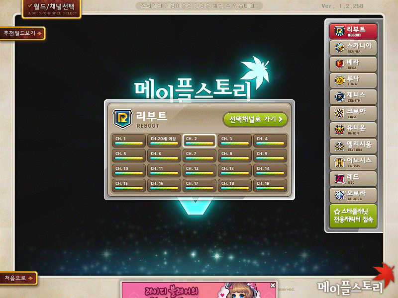 리부트 서버에 사람이 많이 몰리자 사람들을 분산하기 위해서 만든 서버다. 그런데 메이플이 좆망하고 리부트 원섭에도 사람이 줄기 시작하자 그냥 망했다.