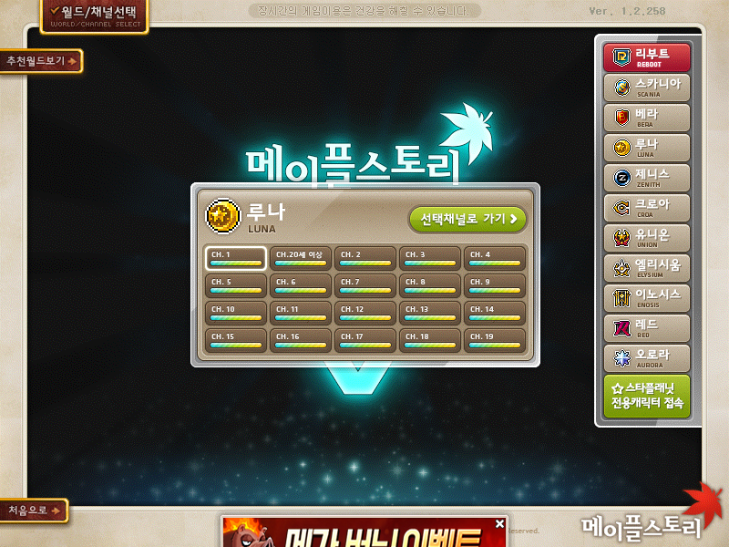 메이플스토리 최초의 서버. 통합 안 하고도 가장 많은 유저 수를 보유하고 있다.