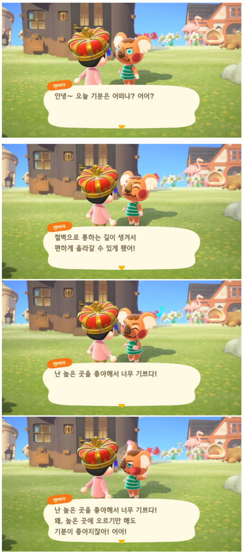 시작은 플레이어+주민 동물 2마리 그래픽은 상당히 아기자기하고 화사하다.