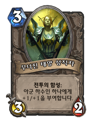 얼왕기에선 타락컨셉이라고 코스트와 스탯을 1씩 줄인 타락한 태양 성직자가 나왔다.카드 아이디어가 없나보다.