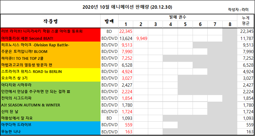 이런 작품들은 판매량이 분기 탑 아니면 2기 안나오는 작품들임.