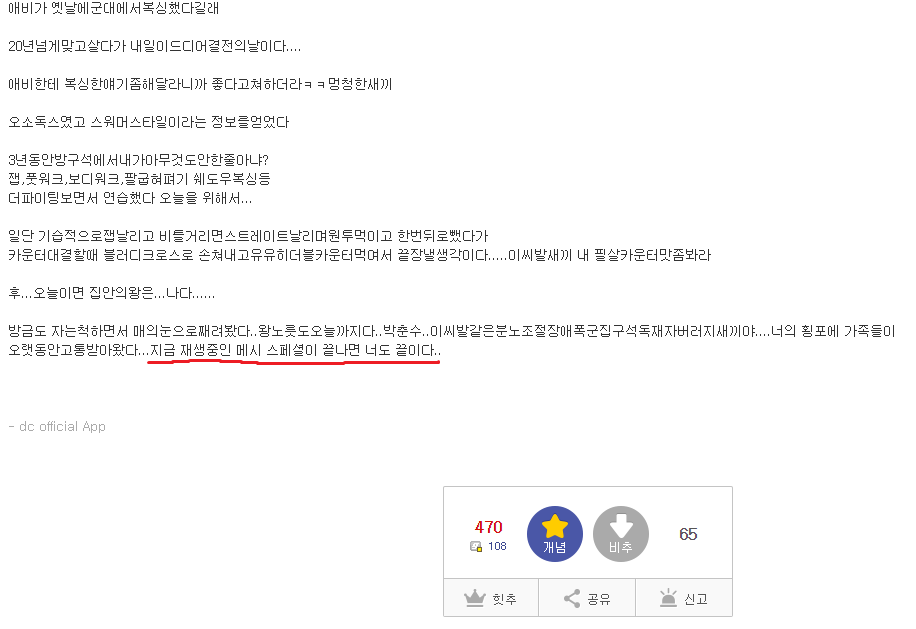 해축갤에서 18년도부터 위의 사진처럼 병신같은 글을 쓰고 글 마지막에 참고로 난 xxx팬이야, xxx 매드무비 보고 자야지 같은 식으로 일부러 티나게 위장하는게 유행했었다.