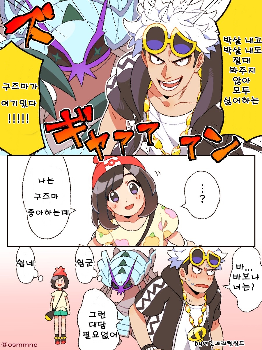 머리에달린고무장갑같은것은 사실 포켓몬이다. 촉수로 미월이 뇌에 기생하고있는데 입으로 촉수를 뿜을수있어서 릴리에 글라디오 아줌마 가족단위로공략하고다님 ㄹㅇ루다가