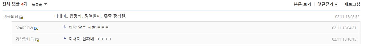 - 참고로 이새끼는 저 위에 주한미군이 딥스이니 철수해야 한다는 주사파와 동일인이다.