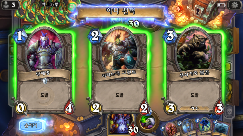 3코스트 1/4 도발, 전투의 함성:도발 하수인을 발견합니다.