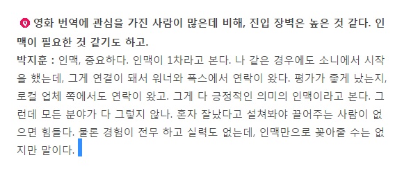 이 오역가를 감싸주는 배급사들도 문제가 있다. 딪코 이 새끼들이 문제임 마블 영화로 돈 오지게 버니까 번역은 ㅈ도 신경 안 쓰고 박지훈 감싸기나 해줌.