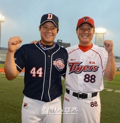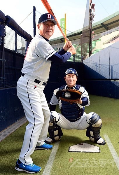 ↑왼쪽은 두산베어스 포수 박세혁 , ↑오른쪽은 두산베어스 타격코치 박철우