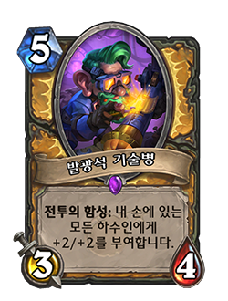 블리자드 오피셜에 따르면 미드기사에 넣을 것을 추천한다고 한다. 미드덱에서 5턴에 3/4짜리 내라니 보나마나 버프해봤자 크툰도적당할게 뻔하다.