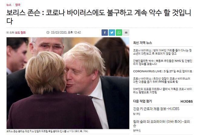 우한 코로나가 영국에서 깽판을 치는 와중에 확진 판정을 받았다고 한다.