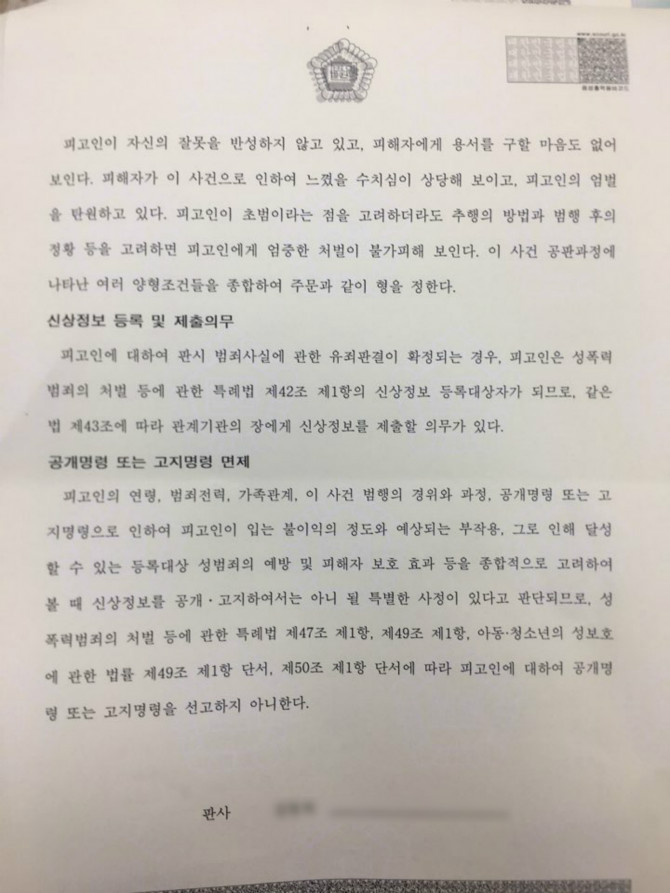 아니, 어쩌면 성범죄에 엄벌주의적이라기보다는 판사 자신의 잣대가 조금 특이한 것 같다. 어쨌든 판사 신상이 공개된 상태니까 갤럼들은 알아서 각도기를 챙기도록 하자.