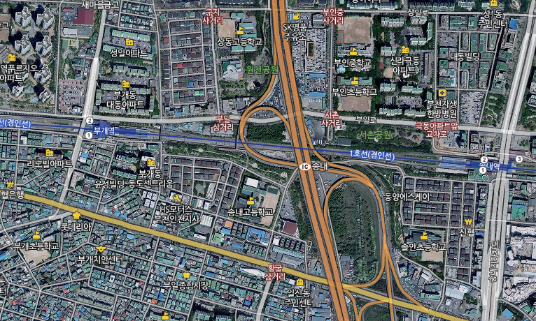 | 경인선 | 구로IS · 구일 · 개봉I · 오류동 · 온수 · 역곡IS · 소사 · 부천IS · 중동 · 송내IS · 부개 · 부평IS · 백운 · 동암I · 간석 · 주안IS · 도화 · 제물포I · 도원 · 동인천IS · 인천W | |||||