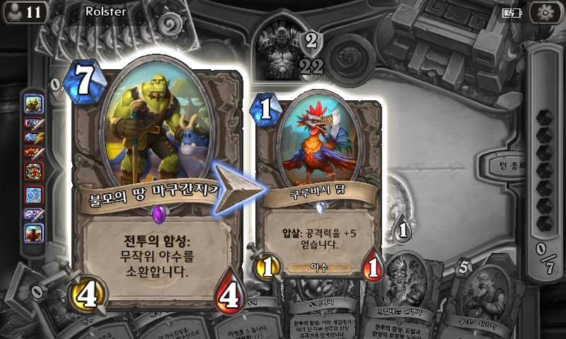 기본카드만 봐도 붉은늪지랩터, 갓갓갓갓갓갓 갓갓갓갓, 돌엄니멧돼지 등 저코스트 야수가 많아서 제값을 하기 어렵다. 투박장에서도 거를 카드