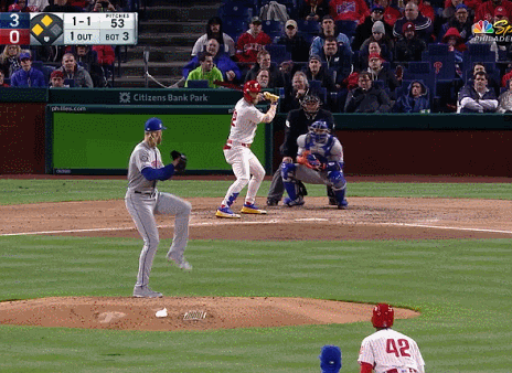 볼넷만 열심히 얻으며 리스 호스킨스 타점만 늘려주다가 드디어 첫 안타를 깠는데 그게 첫 홈런.