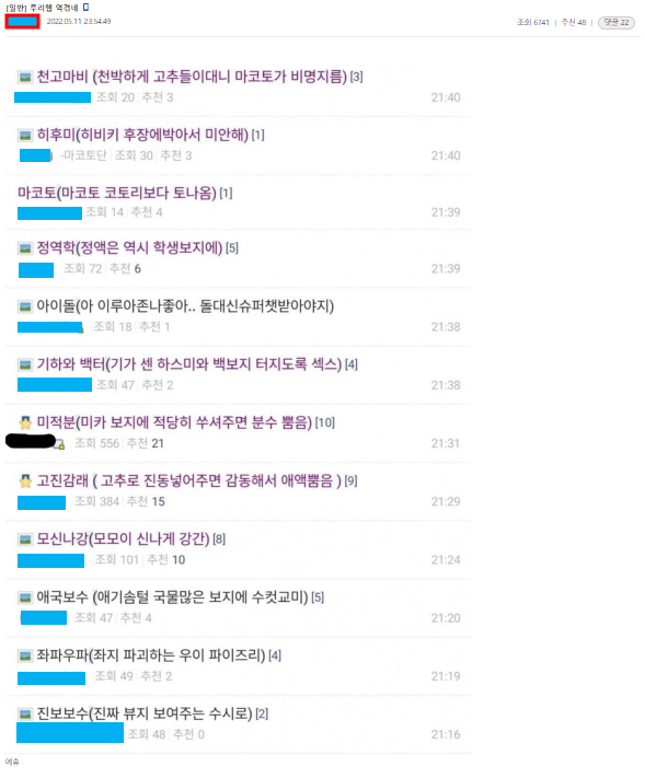 2022년 5월 18일 : 한 파딱의 병신짓과 그걸 커버치려는 주딱 사이에서 좆목 논란[1], 이후 이 좆목 논란은 계속 이어져 노랑 아카이브 제작자 고로시까지 이어진다.