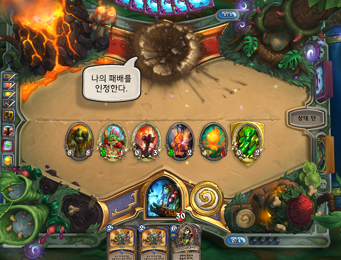 근데 20코 시작에서 25코로 큰 너프 쳐먹고 망했다. 예전엔 영웅 체력 10에서 공짜였는데 인제 체력 5에서 공짜다. 용암거인 공짜 될 때쯤엔 영웅이 뒤진다. 신격용거덱은 의문의 상향을 받았다.