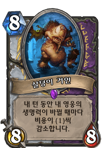 8코, 내 턴 동안 내 영웅의 생명력이 바뀔 때마다 비용이 (1)씩 감소합니다.