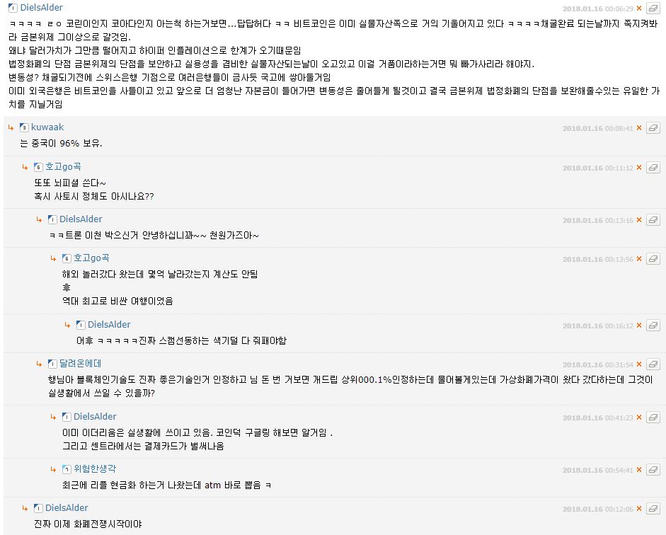 - ㄴ 글 보면 알겟지만 채굴충들이 지들 혼자 죽는 거 싫어서 계속 시세 오르는 거 홍보하며 대신 폭탄 끌어안고 죽을 얼간이들 모집중이다.