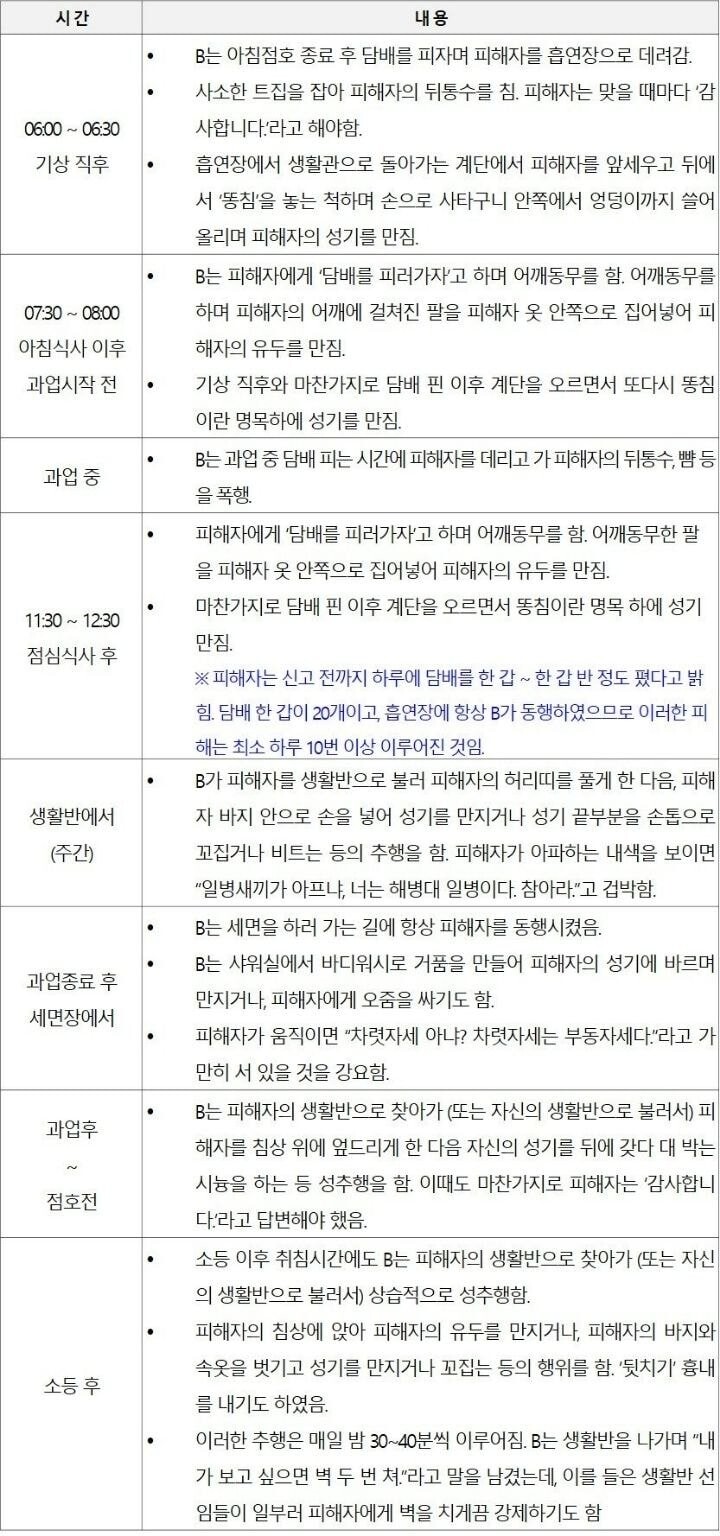 영웅 심리 내보고 싶은 일진들이나 학교에서 배우는게 주로 똥군기 밖에 없는 애들이 해병대에 주로 자원입대를 하니까 구타, 괴롭힘이 해병대에서 당연한 것 처럼 여겨지는 것이다