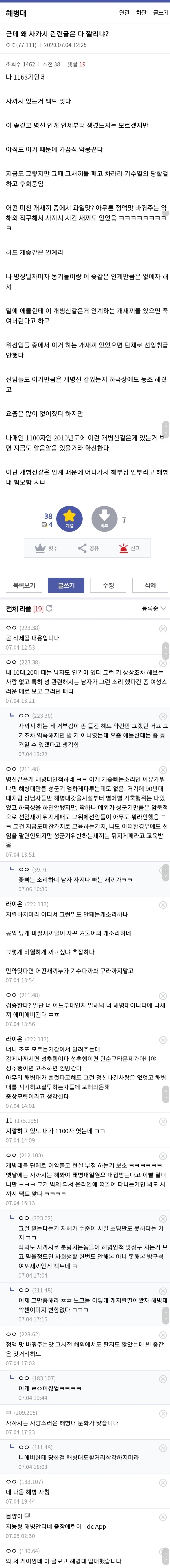 다 필요 없고 해병대가 그렇게 좋으면 말뚝이나 박아라.