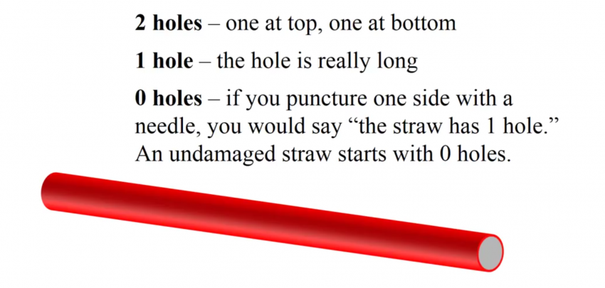 - "위상수학적으로 빨대는 1-hole torus와 동형이다. 고로 정의에 따라 빨대 구멍은 한개이다."