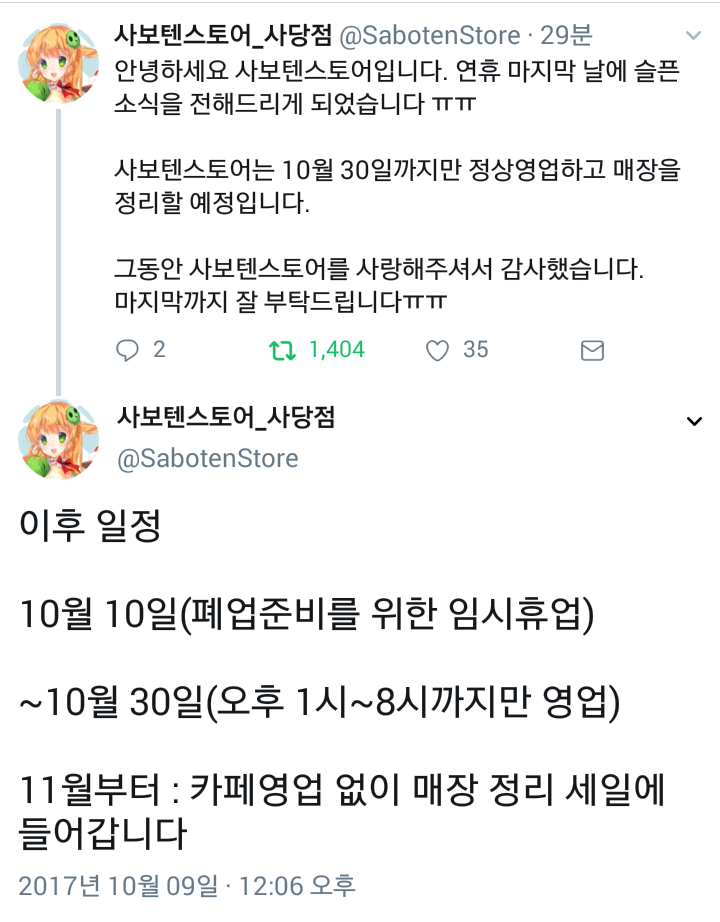 입고상품도 그렇고 이벤트도 100에 80은 메이드분들 트위터로. 20은 블로그로 알려주신다.