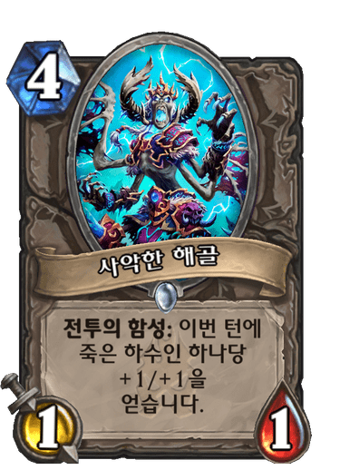 4코 1/1, 전투의 함성:이번 턴에 죽은 하수인 하나당 +1/+1을 얻습니다.