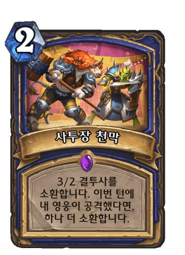 2코, 3/2 결투사를 소환합니다. 이번 턴에 내 영웅이 공격했다면, 하나 더 소환합니다.