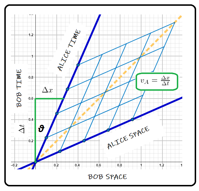 Minkowski 다이어그램은 속도가 다른 두 관측자 사이의 시간 지연, 길이 수축, 질량 변화를 한 눈에 보이게 해 준다.