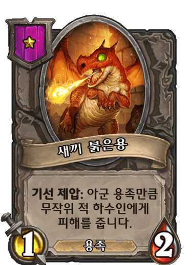 1/2 (2/4) 용족, 기선 제압: 아군 용족만큼 무작위 적 하수인에게 피해를 줍니다. (2번 발동합니다.)