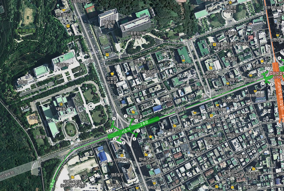 | 을지로순환선 | 시청 · 을지로입구 · 을지로3가 · 을지로4가 · 동대문역사문화공원 · 신당 · 상왕십리 · 왕십리 · 한양대 · 뚝섬 · 성수 · 건대입구 · 구의 · 강변 · 잠실나루 · 잠실 · 잠실새내 · 종합운동장 · 삼성 · 선릉 · 역삼 · 강남 · 교대 · 서초 · 방배 · 사당 · 낙성대 · 서울대입구 · 봉천 · 신림 · 신대방 · 구로디지털단지 · 대림 · 신도림 · 문래 · 영등포구청 · 당산 · 합정 · 홍대입구 · 신촌 · 이대 · 아현 · 충정로 · 시청 | |