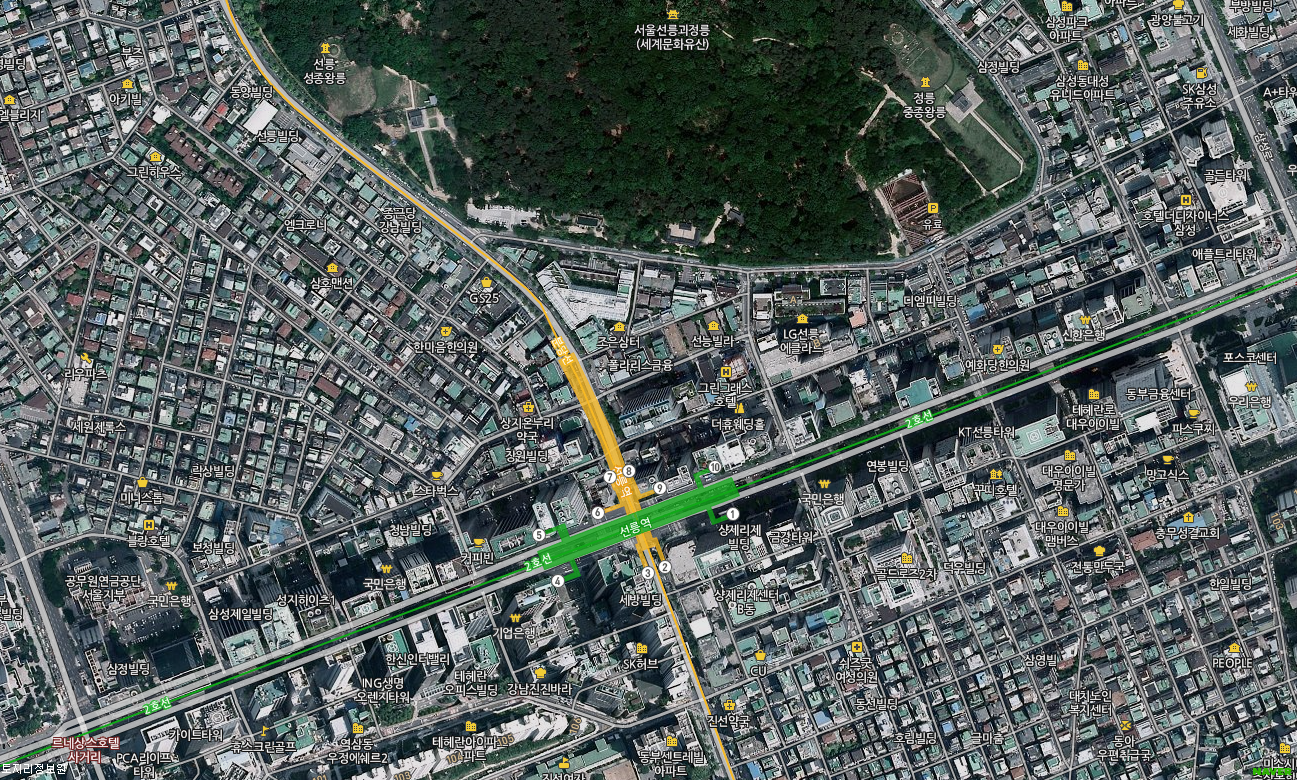 선정릉은 선정릉역보다 선릉역이 더 가깝다.