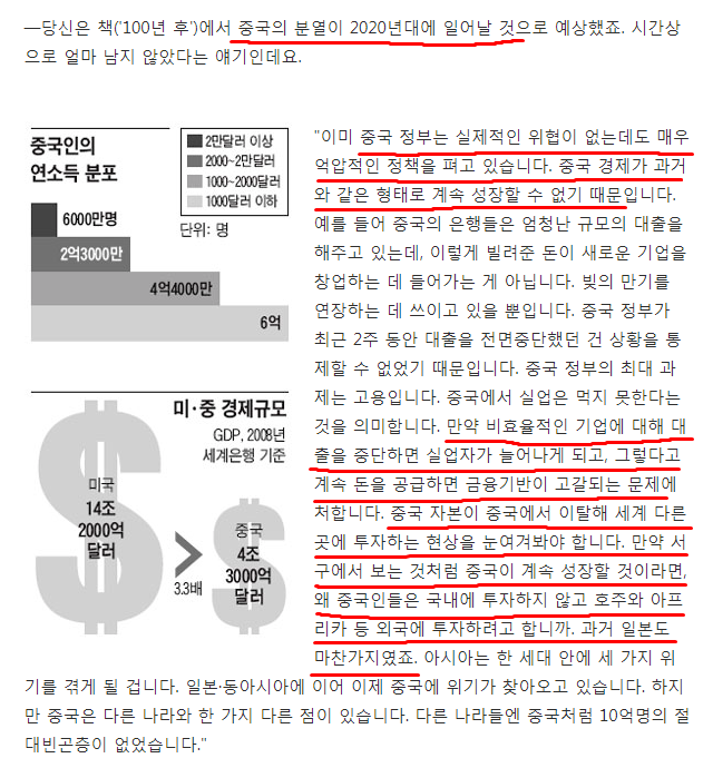 스트랫포의 조지 프리드먼은 모든 사람이 중국을 빨던 이미 10년전에 중국의 좆망을 예측하고 2020년대 중국의 분열을 예견함.