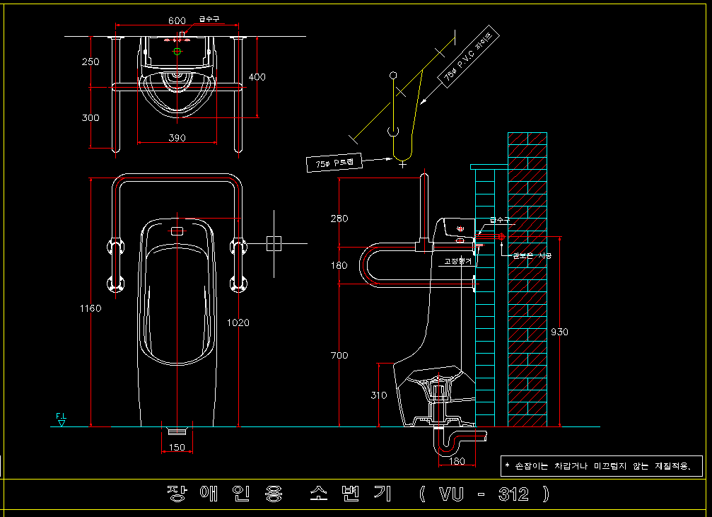 아래는 전자감응식 소변기의 제원이고 두번째는 장애자용 소변기의 제원이야. 방긋