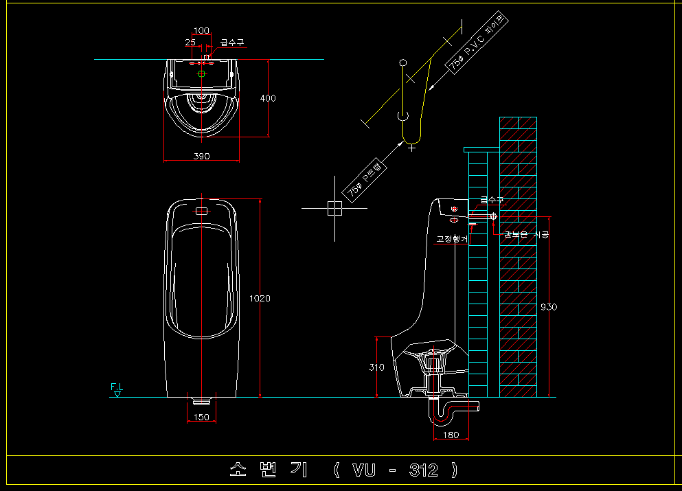 • F.V(플러시 밸브)소변기:구형 소변기인데 버튼을 눌러서 물을 방류하는 방식이야.
