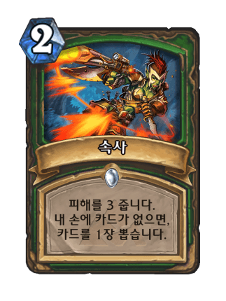 결국 위의 카드가 '신속 사격'으로 개명당했다. 와우 기준으로는 이게 속사가 맞고 검바산때 나왔던 속사가 오역이라고 한다.