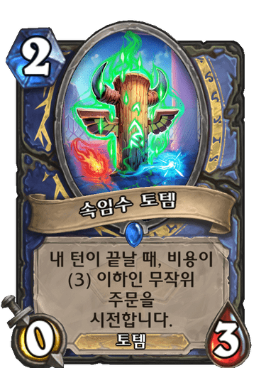2코 0/3 토템, 내 턴이 끝날 때, 비용이 (3) 이하인 무작위 주문을 시전합니다.