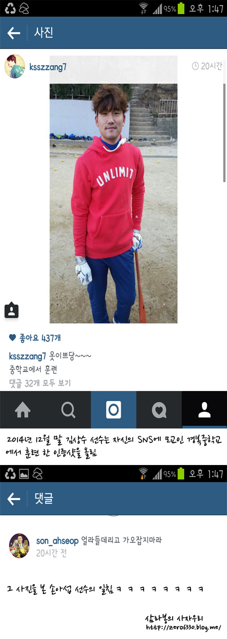 김상수가 비시즌에 모교 찾아가서 인증샷 찍으니까 가오잡는다고 악플