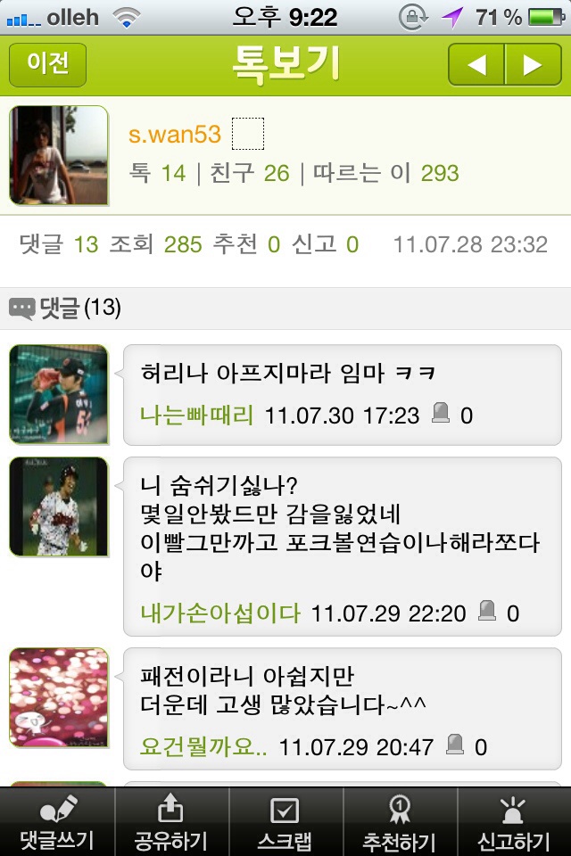 강정호 상대 악플