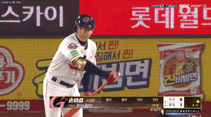 그래서 손아섭이 얼빠년들에게 갓침을 날려주었다.