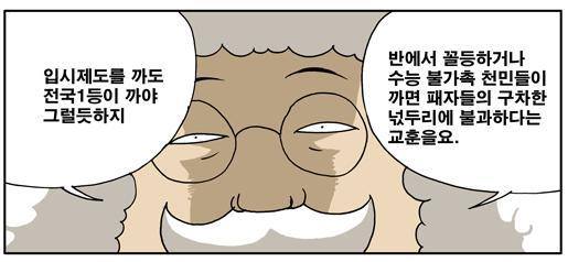 그리고 어차피 자원은 제한되어 있고, 그걸 분배하기 위해선 특정한 기준이 있어야 한다. 그나마 조오오오금이라도 못난 이들이 희망을 걸 수 있는 게 교육 같은 거라는 공감대가 형성되어 있어서 이러는 것이다.