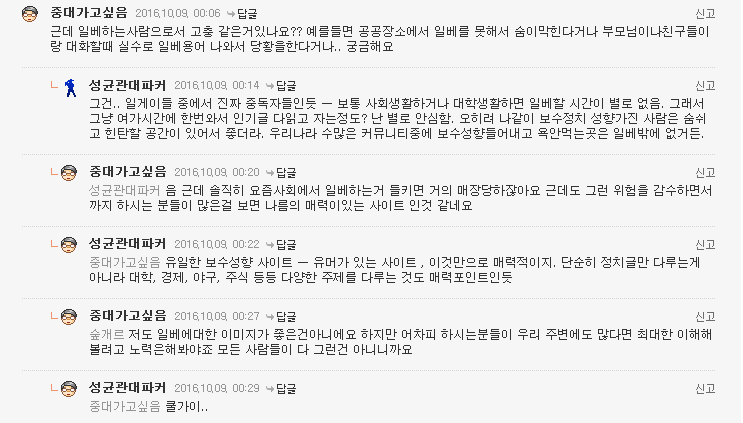 개방적이라기보단 걍 지들이랑 수준에 맞게 노는거다. 일베가 쓰레기같다는걸 알면서도 잘 지내도록 노력해보겠다니.. 얼마나 병신스러운 말인가? 이 말은 자녀를 가진 부모가 페도새끼가 이웃이니 자녀가 걱정스럽긴 하지만, 그래도 친하게 지내보도록 노력하겠다와 동급이라고 보면된다.