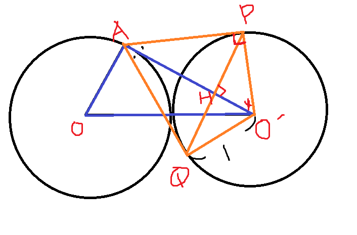 그림과 같이 선분 PQ의 중점을 H라고 하면, △APO'과 △PHO'은 AA 닮음이다.