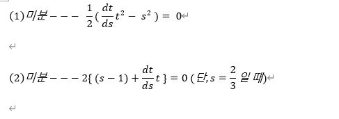 상수를 지워버리기 위해서 (1)식과 (2)식을 s에 대해서 미분한 후 연립하도록 하자.