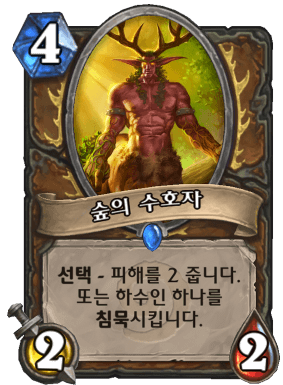 능력치는 4코스트 2/2이고 선택으로 2뎀을 주거나 하수인 하나에게 침묵을 건다.